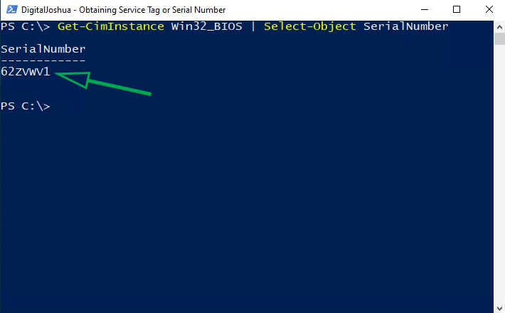 The 1st Step in obtaining Drivers for Dell PCs is finding your Service Tag Number or Serial Number. This can be easily done by running a PowerShell window, and using either of the following commands, which will give you a single line Output: