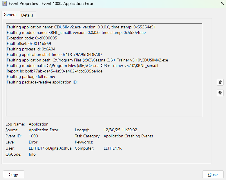 Faulting application path: C:\Program Files (x86)\Cessna CJ3+ Trainer v5.10\CDUSIMv2.exe