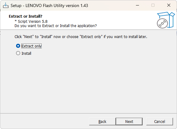 3. Extract the content of the files. Older utilities will extract the files and attempt to perform the BIOS update (be careful and just make sure to cancel the update) – Newer ones will give you the option to Update or Extract only. If you already tried to update the BIOS and failed, then the utility already extracted the files to C:\SWTOOLS. To play it safe, I highly recommend you use a utility like Universal Extractor, WinRAR, or 7-zip to extract each archive to its own directory.